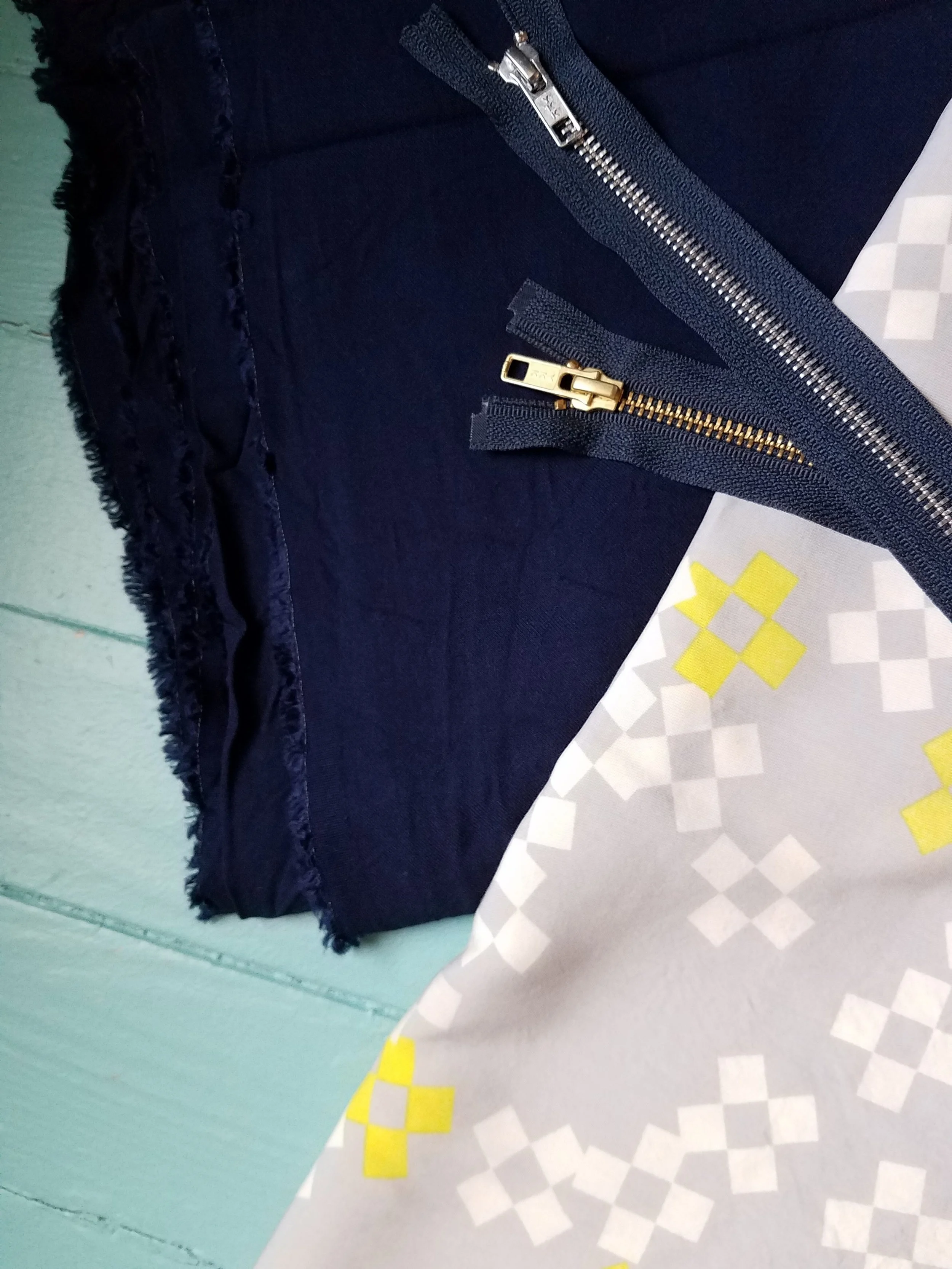 Navy rayon twill (sold out) from La Finch Fabrics and rayon Frock 2015 (Cotton and Steel)